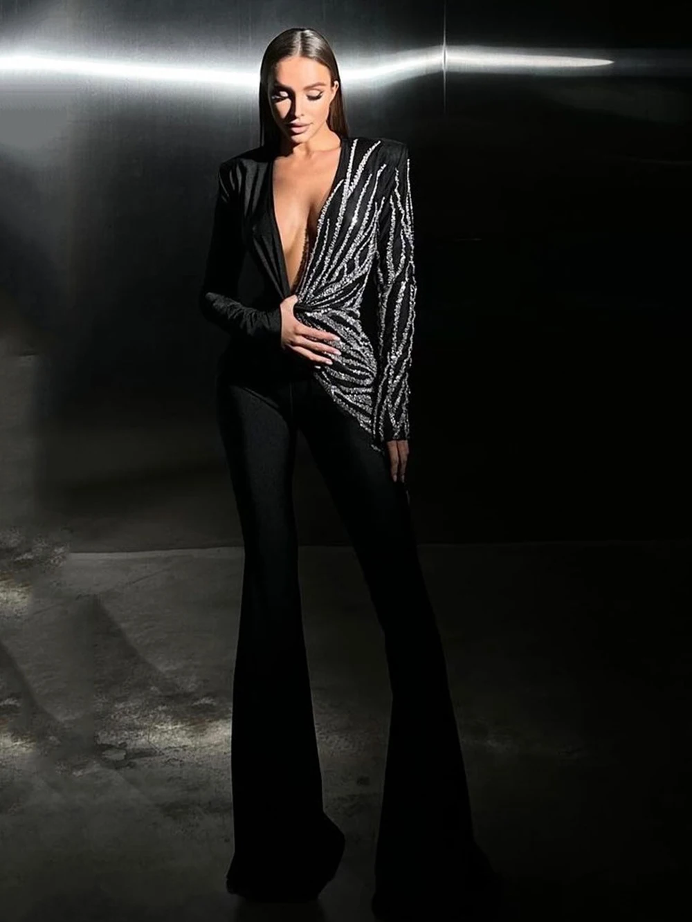 Asymmetrischer Pailletten-Jumpsuit – Elegant & Kraftvoll