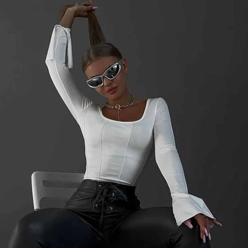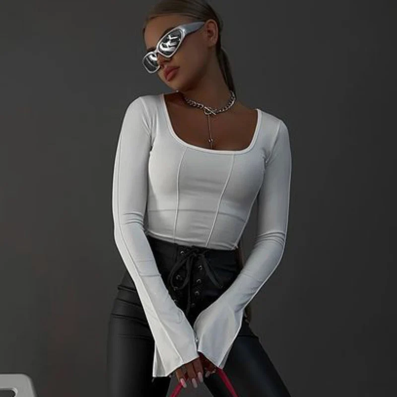 Susy | Weißes, sexy Langarm-Top